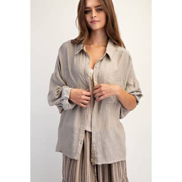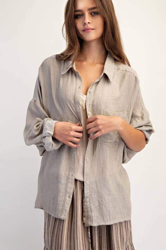This full-sleeved collared blouse puts an exclamation point on your everyday life. Immaculate covered buttons down the front and cuffs add to this blouse's elegance. And our wrinkle-textured fabric will keep you comfortable all day and set your mind at ease - no need to worry about wrinkles standing out with this one!