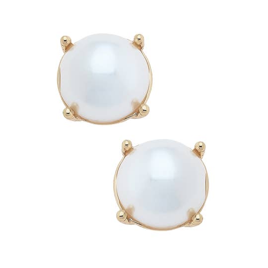 -Chunky, premium-grade faux pearl stud earring set in 18k gold-plating. -Post Back -0.6" Diameter Nickel and Lead Compliant (Hypoallergenic)