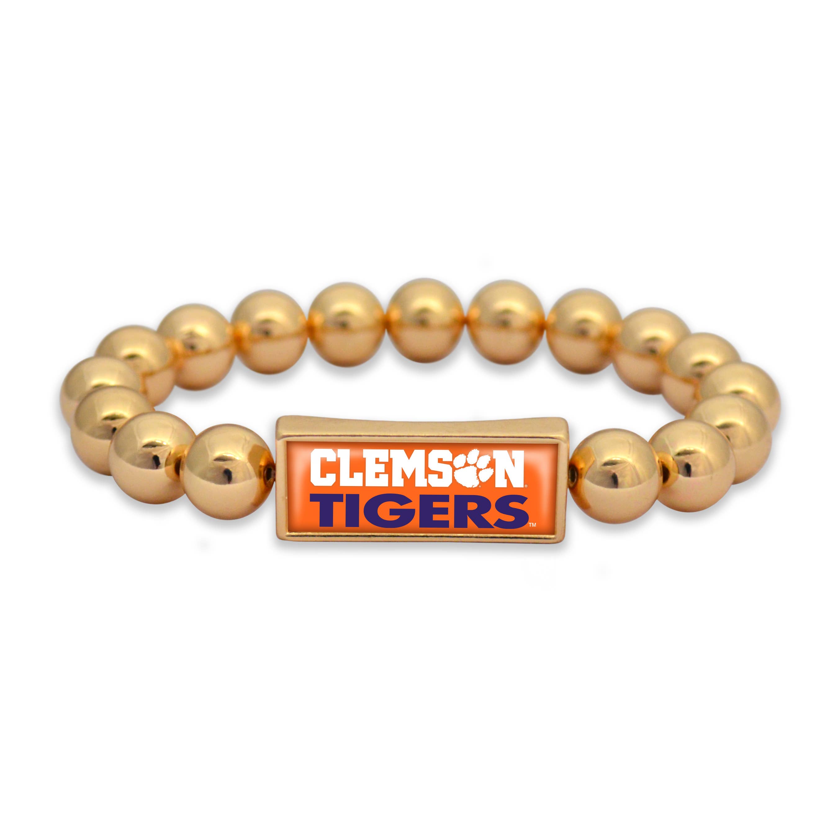 Arkansas Razorbacks Ball Bead Stretch Bracelet in Satin Gold