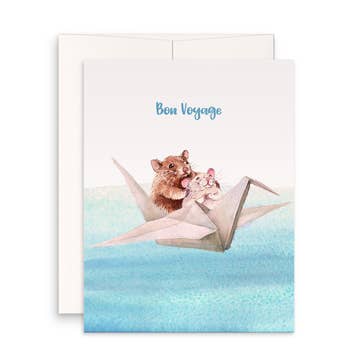 Front: Pasta La Vista, Baby! Inside: Blank. Perfect for: Goodbye, Moving and Retirement. Details: A2 (4.25" x 5.5") card. Printed on thick uncoated, recycled card stock. Paired with a 100% recycled A2 peel and press grocery bag kraft envelope. Packaged in a cellophane sleeve. Tiny Gang Designs logo on the back. All cards are housed in a clear cello sleeve to keep them safe until you're ready to sign, seal and deliver, doll!