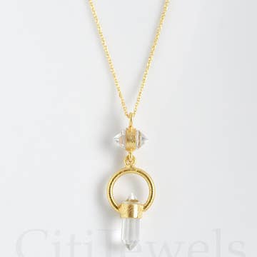 17" gold plated chain w/ 1" extender chain; Natural Quartz Crystal pendant