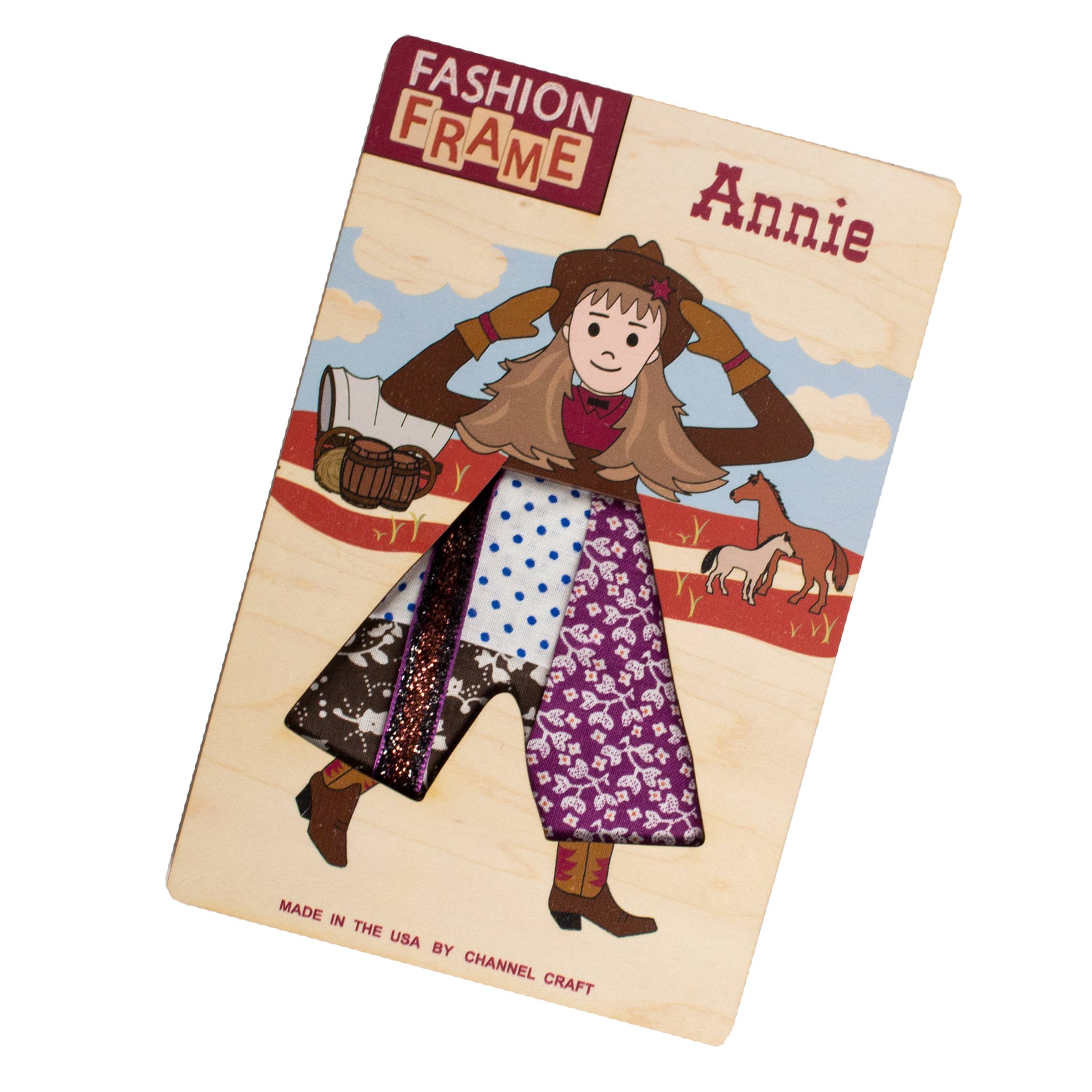 Based on old fashioned dress-up kits that provide fabrics and frames depicting heroines of the era, these remarkable American women that have been leaders in their field, their culture, our history and our future. Each Fashion Frame comes with many fabrics and trim to imagine & create. The frames are laser-cut out of a special maple wood laminate, then colorized & assembled by our crafters to create an heirloom-quality product to be enjoyed for many years to come.