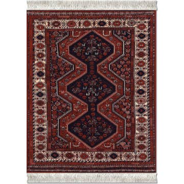 This splendid Qashqa'i Shekarlu rug covers the most famous piece of furniture in the world, Sigmund Freud's psychoanalytic couch. The brilliantly colored rug was made by one of the nomadic tribes of the Qashqa'i confederacy in Persia in the nineteenth century. Freud's patients reclined on this rug recounting their memories, dreams, and fantasies. The surrealism and magic of this oriental rug have been captured in our adaptation of the exquisite Mouse Rug. Design © The Freud Museum. Made in the USA. MouseRug dimensions - approximate finished size: 7.125" x 10.25" (including fringe) and 0.16" thick MSF-1 UPC 680638000186 mousepad oriental rug carpet gift