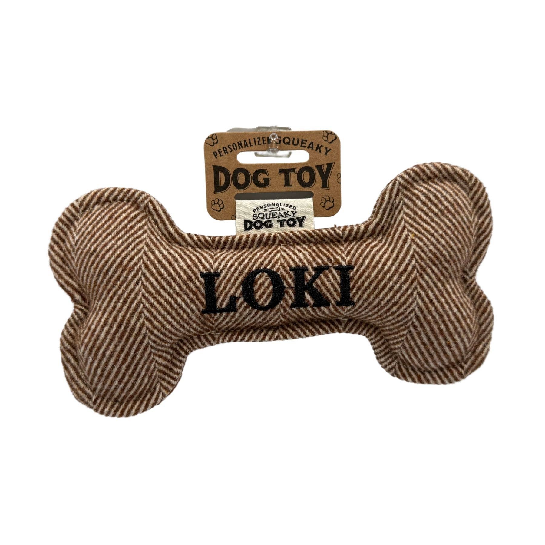 Each toy features a built-in squeaker and comes in a variety of options, including generic titles, popular breeds, and the trendiest dog names— each embroidered in bold black thread. Made from tough tweed fabric with a double-hem finish, this toy is built to last through countless play sessions. These Dog Squeaky Toys make great gifts for dog parents and their canines to celebrate birthdays, Christmas, Mother's Day, Father's Day, and even just because!