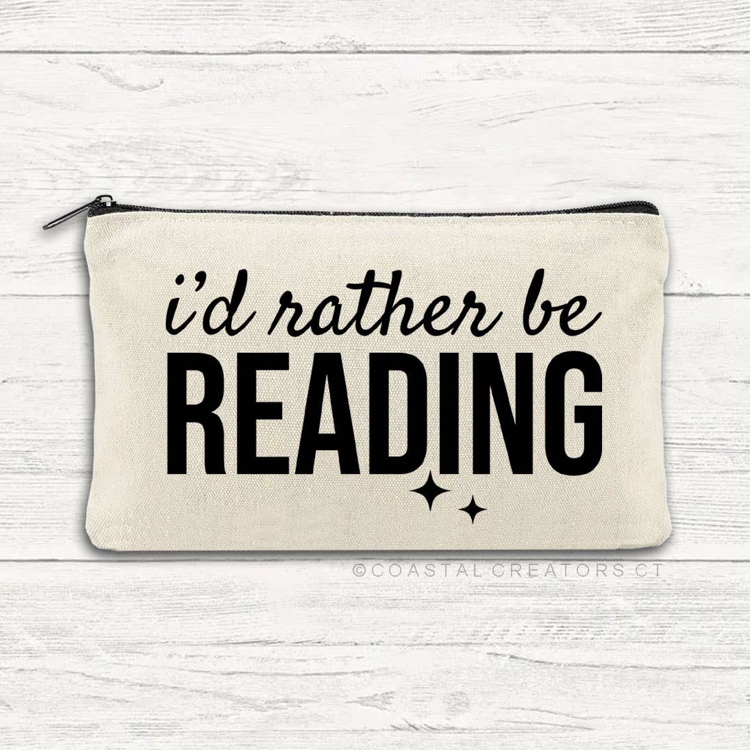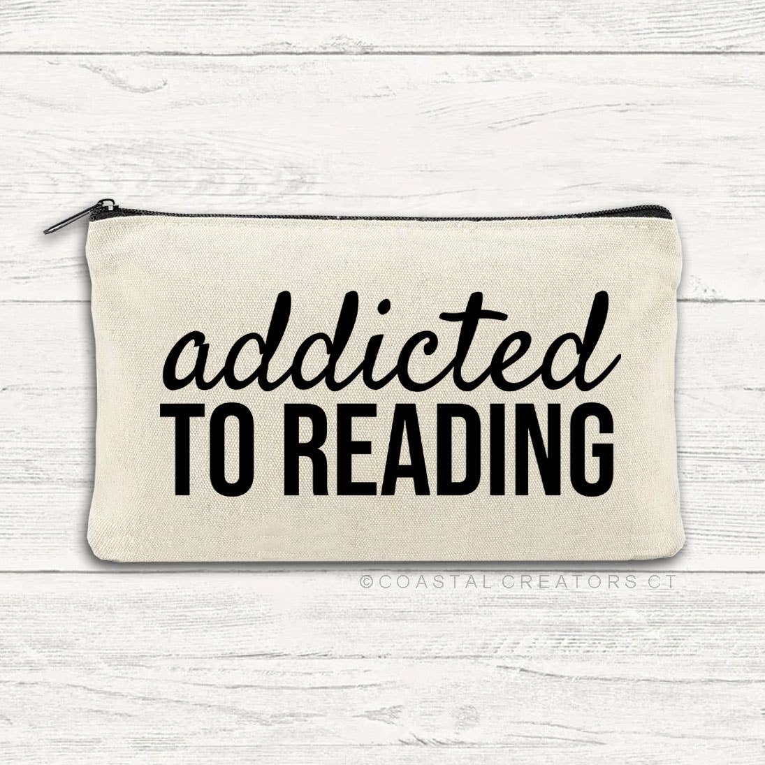 Each Emotionally Attached to Fictional Characters canvas zipper bag is individually packaged with or without a header card. Bags are unlined. Fabric is light beige canvas. Zipper is black. These canvas multi-purpose zipper bags measure approximately 8" wide x 4-1/2" high and feature a cute saying or design on the front. They are perfect for pencils, beauty products, stickers, and more plus they make great impulse items for your shop. Keywords: bookish gifts, book lover, book gifts, reader gifts, gift shop, impulse item