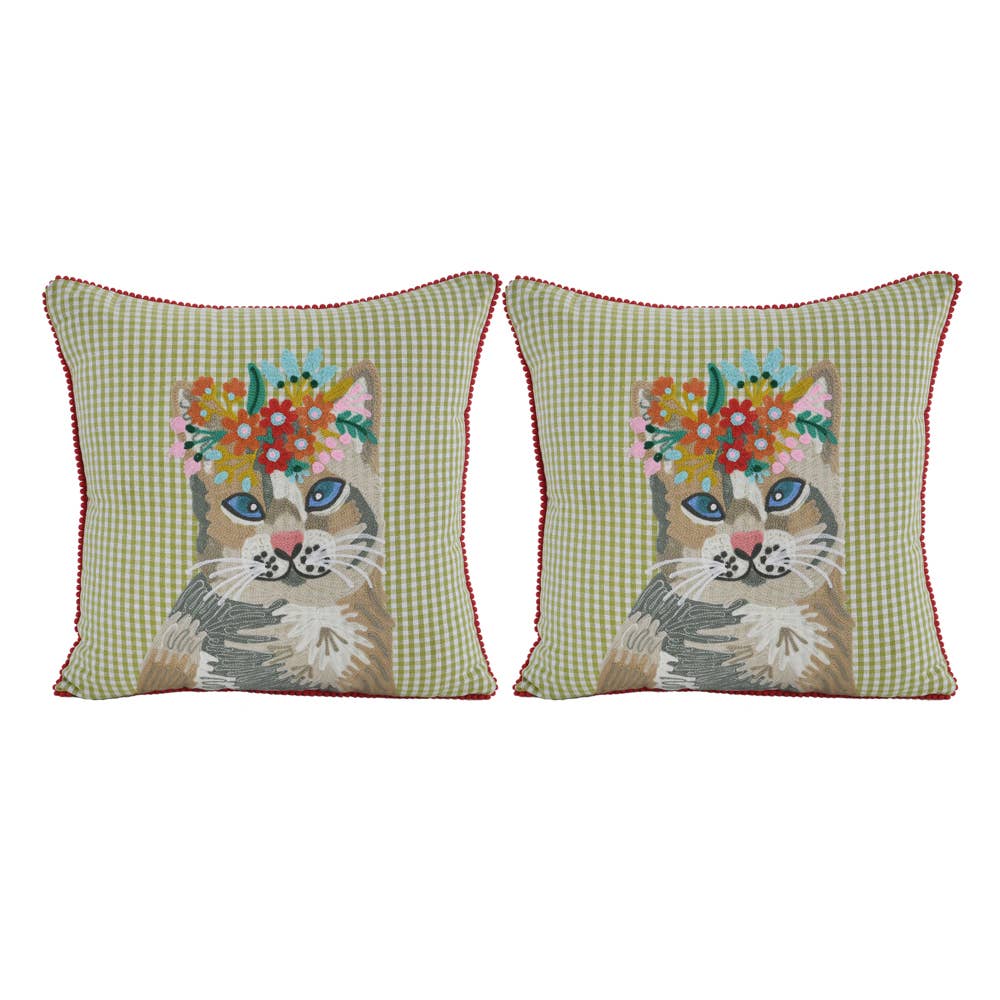 DETAILS: - We currently offer one square size - Pillow cover is a natural - beige color; it is not white - Pillow size is 17 x 17 inches - Comes with a zipper enclosure along the bottom - Pillow filler is included with the cover Spot cleaning recommended. Machine washable on gentle cycle, cold water. Lay flat to dry.