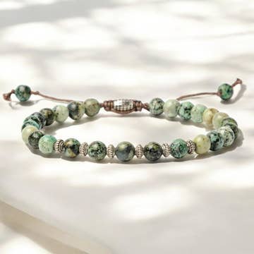 Men's bracelet made with labradorite and antique silver metal.