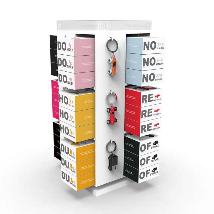 White Tower Acrylic Display for Keychains. It can hold 20 styles & 60units (Display Samples not included). MTMD5 & MTMD10 tower displays are proven sales tools among other display options.