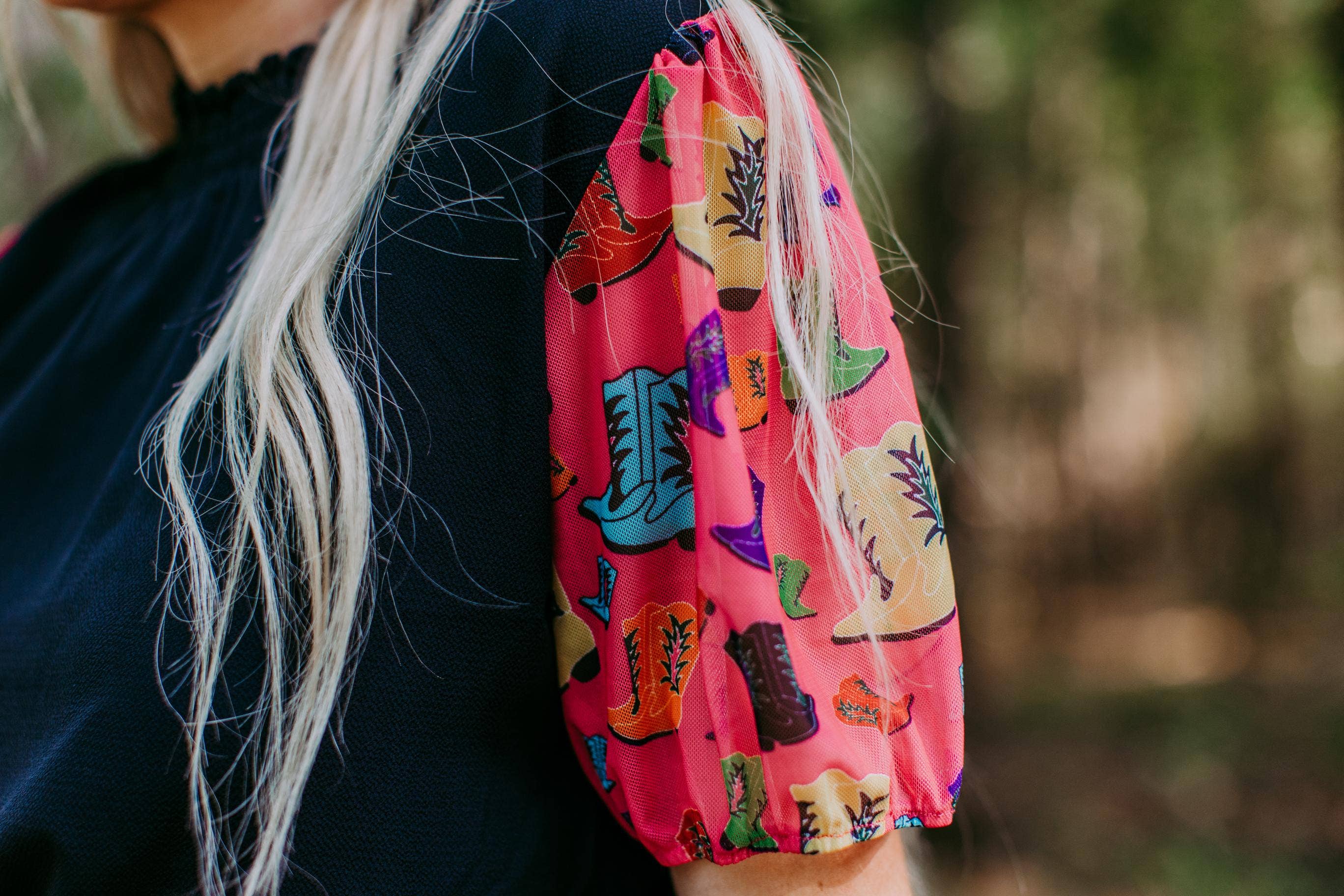 So cute and fun, everyone in a three-state region will be wanting this tee dress. Hem falls slightly above the knee, while double layer rolled hem sleeves in black/white aztec fabric add all the sizzle your customers will need! Also available in black with black/white aztec sleeve (MK342), and back with multi aztec sleeve (listed separately as MK346) 20%RAYON 75%POLYESTER 5%SPANDEX 20%RAYON 75%POLYESTER 5%SPANDEX