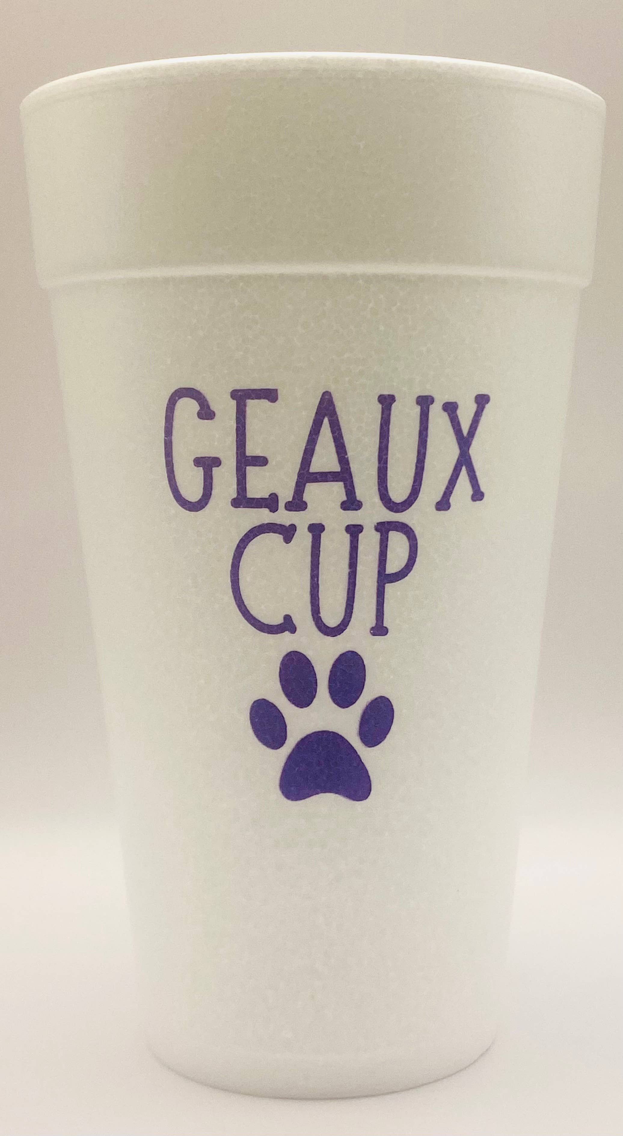 20oz styrofoam cups sold in sleeves of 10 cups. Perfect for hot or cold beverages. Packaged with a bow on the end ready for gifting. Printed in Purple.