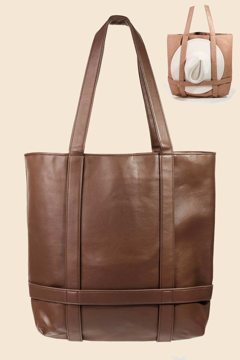 A timeless piece that will never go out of style, this tote bag possesses a fine faux leather handle knitted design. Master the art of accessorizing with this versatile tote bag, a key element for achieving a chic and polished look. Available in IV, KA. This item is sold in packs of 1. This tote bag approximately measures: Length: 18 Inches Depth: 6.5 Inches Height: 15 Inches Handle/Strap: 11 Inches This tote bag is made with 70% Polyester and 30% Pu.