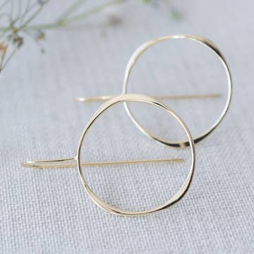 The FLORA earrings are delicate, dainty pieces inspired by the graceful tendrils of nature. Their hammered design evokes the organic, curling shapes of new growth, capturing the softness and vitality of nature as it awakens. These earrings offer a subtle yet elegant nod to the beauty of nature's fresh beginnings. Details: - Hand forged tendril threaders or ear climbers - Recycled sterling silver or 14k gold filled - Lightweight dainty sculptural design - Hammered texture - Made to order Measurements: - 1 inch length* - Made using 20 gauge wire *See FLORA Threaders- available in 2 inch length Packaging: - rubber backing included - Included earring card - Punched or Hanging card converter available by request In an effort to remain eco-friendly and sustainable, our jewelry is all made to order unless otherwise marked "ready to ship." By nature of handcrafted jewelry, there may be slight variations between each piece, but this will only add to the organic beauty of your jewelry.
