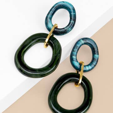 Layers of incredible color come together to create our classic Gia earring. Specifications * Italian Resin * 48mm height * 48mm width * 5.5 grams per earring * hypo-allergenic brass post closure * Made in Italy