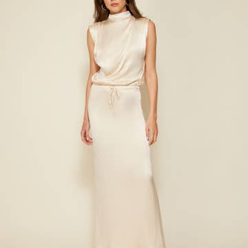 BEIGE Made in USA Solid Satin Midi Skirt for wholesale on Faire0