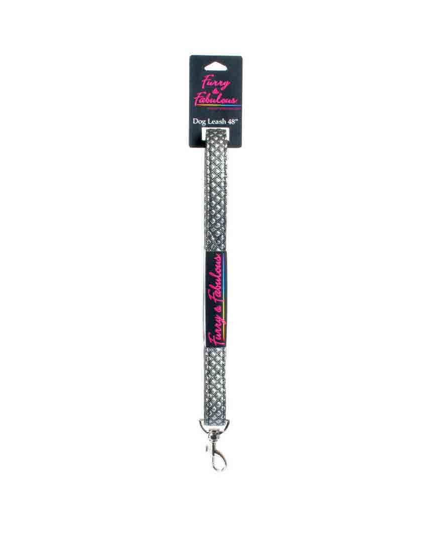 Furry & Fabulous Metal Rainbow Pyramid Studs enhance Black Man Made Faux Leather leash. Silver tone hardware.