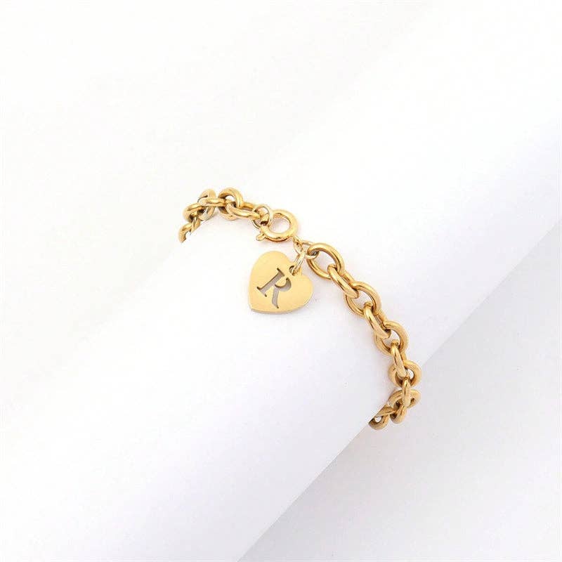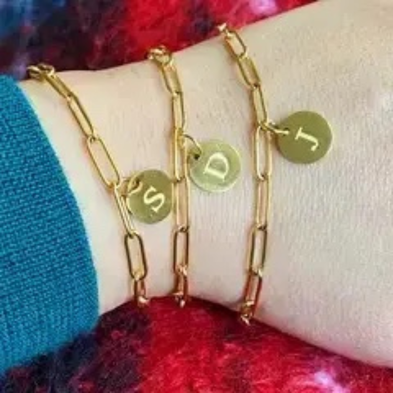 SECRET BOX_ Monogram Initial Stretch Bracelet • Size : 0.3" H • Stretchable • Brass Elegant gold beaded stretch monogram bracelet featuring a minimalist charm design, perfect for everyday wear or layering with other jewelry pieces. Stylish and versatile accessory for any outfit.