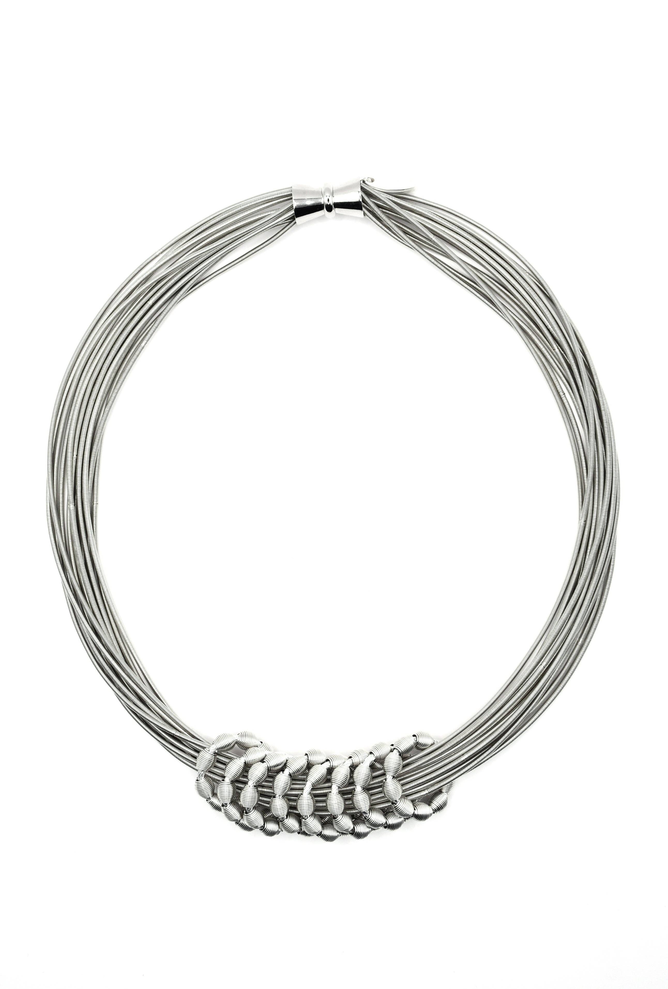 Wholesale L66G Short Black Multi Strand Necklace With Hammered Silver