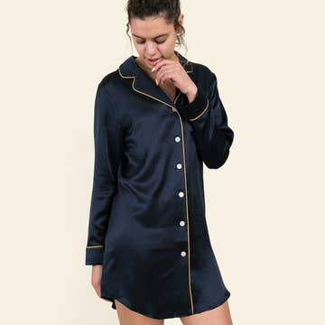 Add a touch of luxury to your nightwear. Two-piece satin set with rhinestone sparkles. Adjustable straps.