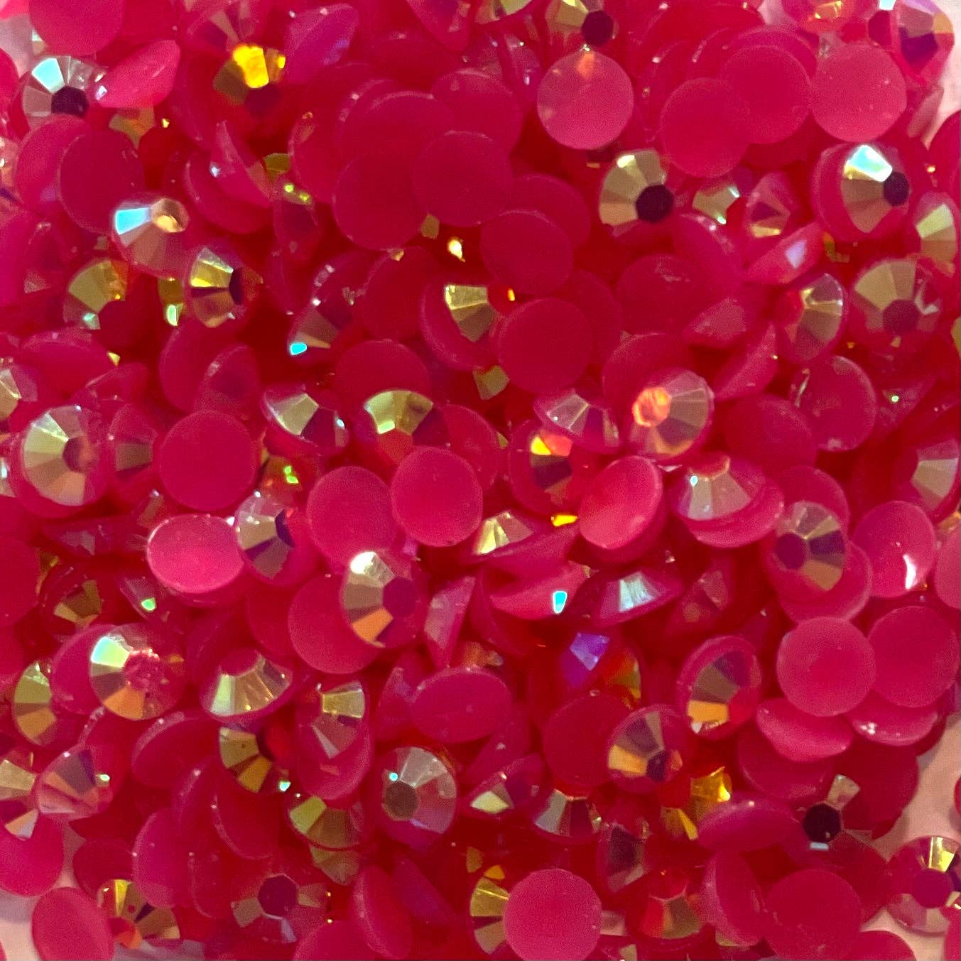 Candy Jelly Rhinestone / Jelly non hot-fix Qty: 1,000/5,000 per bag Non-hotfix Sizes available: 3MM, 4MM, & 5MM Flatback for easy embellishment