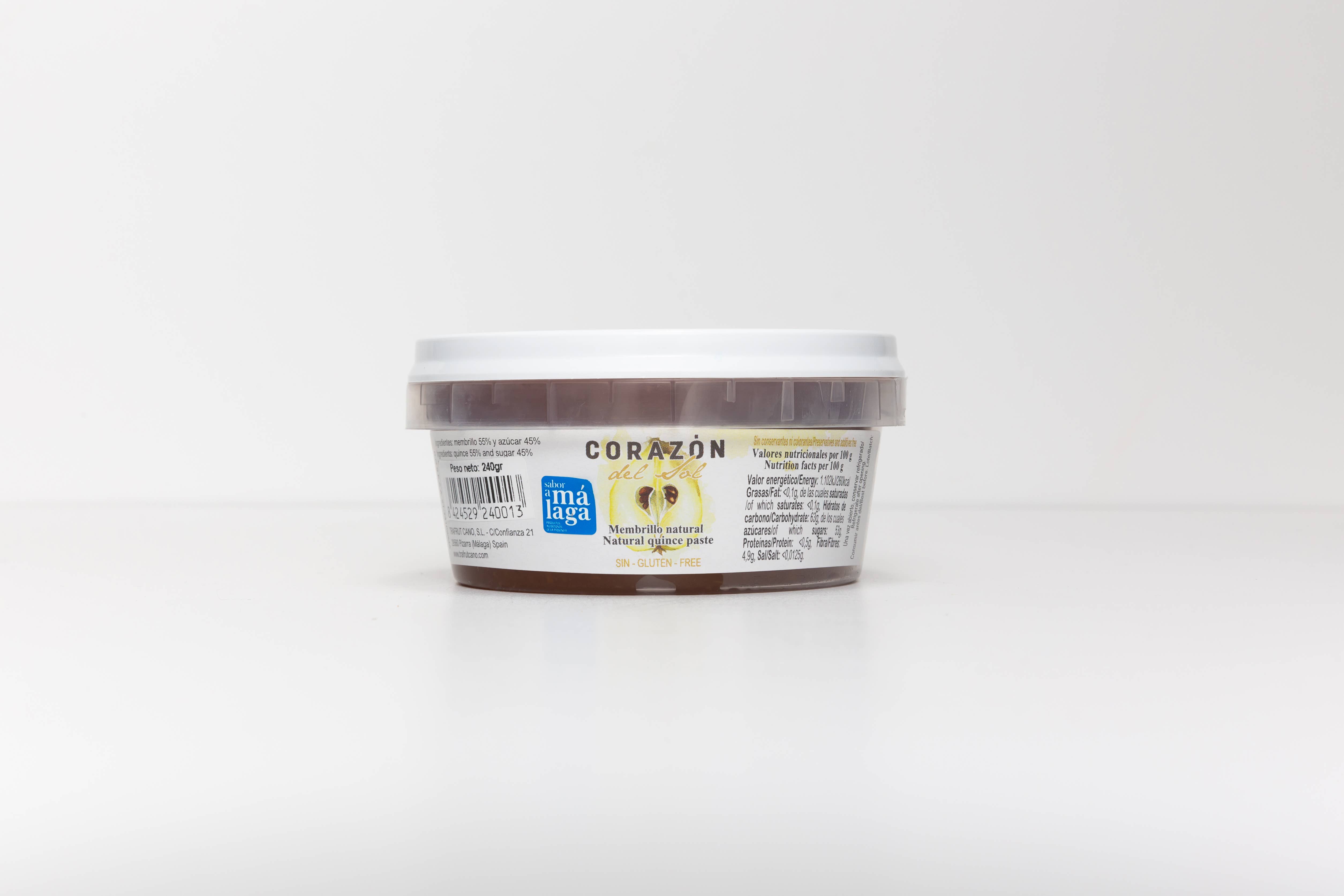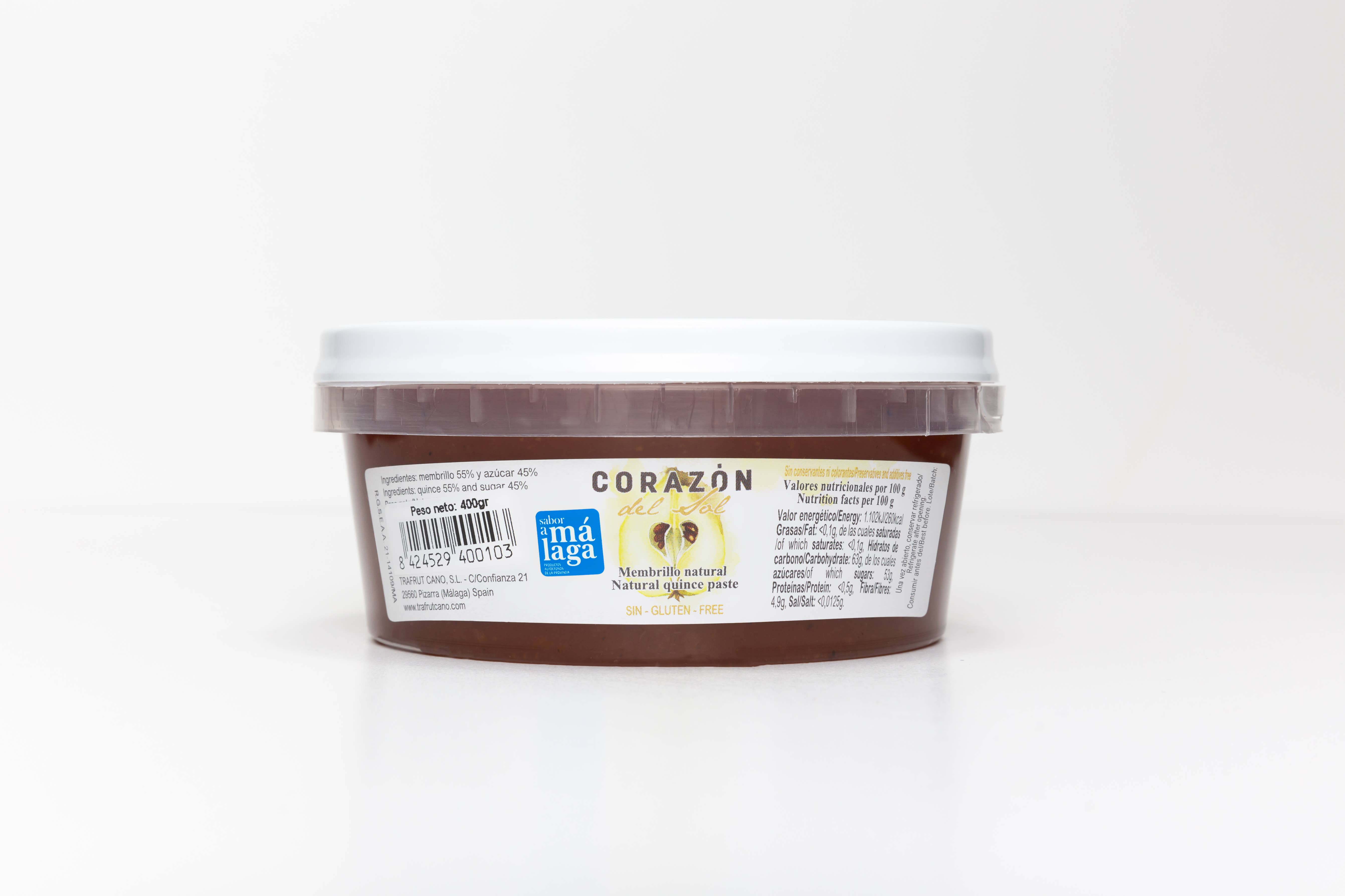 Made in Spain Diet: Gluten-free Ingredients: Quince (55%) and sugar (45%) Production: No preservatives Season: Year-Round Shelf life: 12–24 months Storage: Shelf-stable Weight: 150 g (5.29 oz)