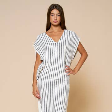 SKU: WL25-11613, WL25-11613, WL25-11613 Made in China Aesthetic: Casual Care Instructions: Hand wash Embellishment: Slit Fabric: 60% COTTON, 40% ACRYLIC Fit: Contemporary Neckline: V-neck Occasion Theme: Everyday Occasion: Everyday Pattern: Striped Rise Style: Regular Season: Spring/Summer Skirt & Dress Length: Midi Sleeve Length: Sleeveless Product Language: English