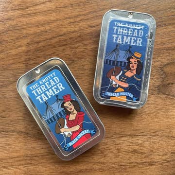 Our thread tamer is created with a special blend of Vegan Soy wax, organic coconut oil and fragrance. It comes packaged in recyclable metal slide-top containers. Our thread tamer coats your threads to prevent tangles, knots, and fraying. Perfect for taming your threads for any hand stitching project- embroidery, quilting, applique, and more! Made in small batches in BC, Canada