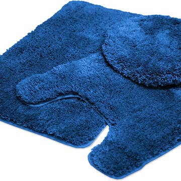 Large 2 Piece Ombre Microfiber Soft Thick Plush Bath Mat Set Material: Made out of 100% Polyester with TPR backing. Non slip backing ensures your bath mats stay in place! Size: Bath mat measures 21" x 34" inches. Contour mat measures 21" x 21" inches. Our microfiber bath rug is much more absorbent than cotton bath rugs. High-pile helps save your floors from dripping water while you're stepping out of the bath, shower, spa, or getting ready by the sink. Moisture is trapped in the mat's deep pile, allowing the rug to dry quickly and cleanly. Machine wash in cold water with mild detergent. Tumble dry on low heat or lay to air dry, the color will not fade with continual uses.