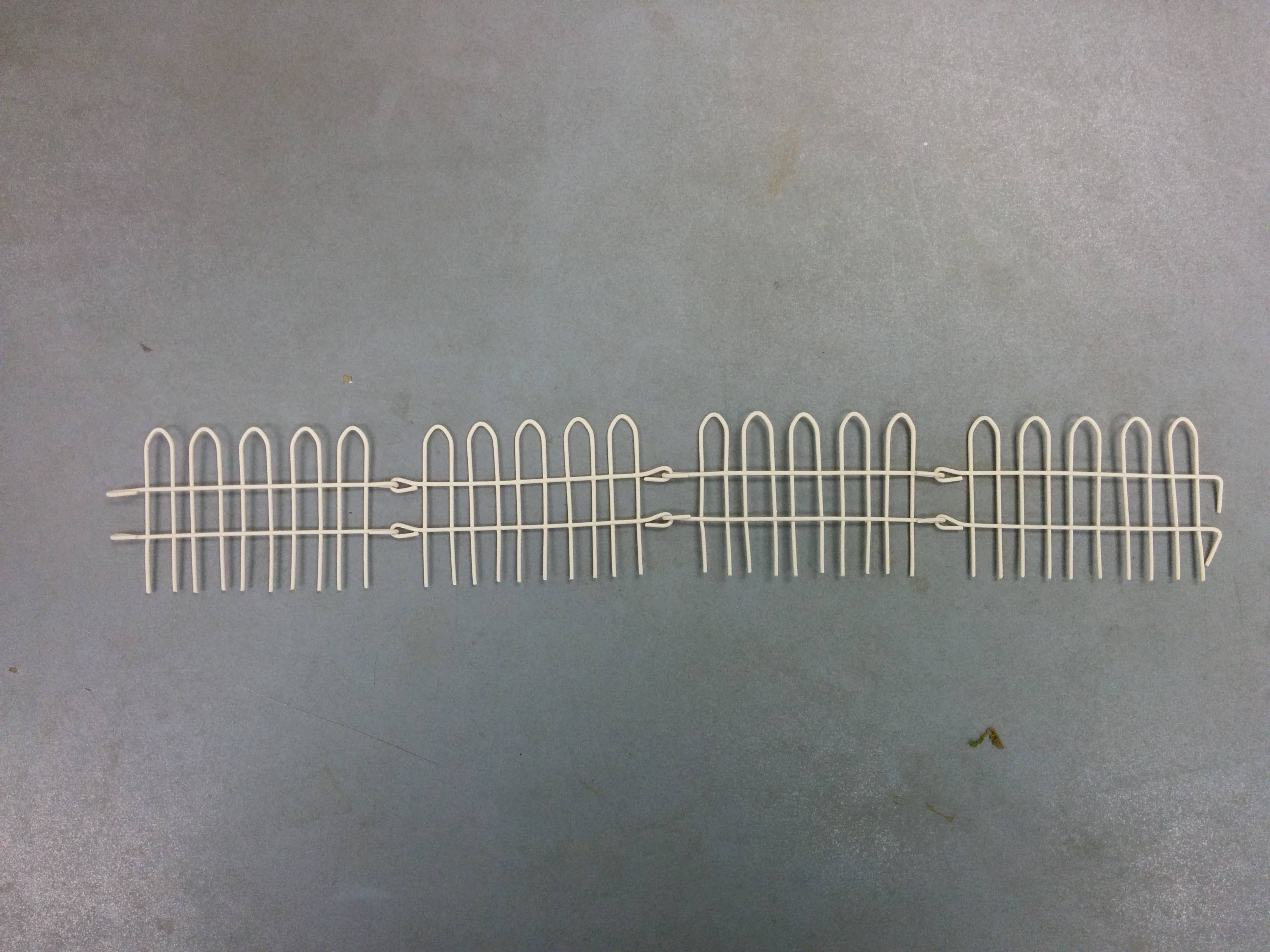 This package includes 4 sections of plastic farm fencing, perfect for a variety of displays. The case contains The pack has a header hang tag for easy retail display. Crafted from plastic, these fences are suitable for both indoor and outdoor use. They make a great addition to dollhouse miniatures, fairy gardens, railroad scenes, or any creative project. Each Fence Section 5" long x 1-3/8" high Price is for 1 pack Case is 12 packages (4 sections per package)