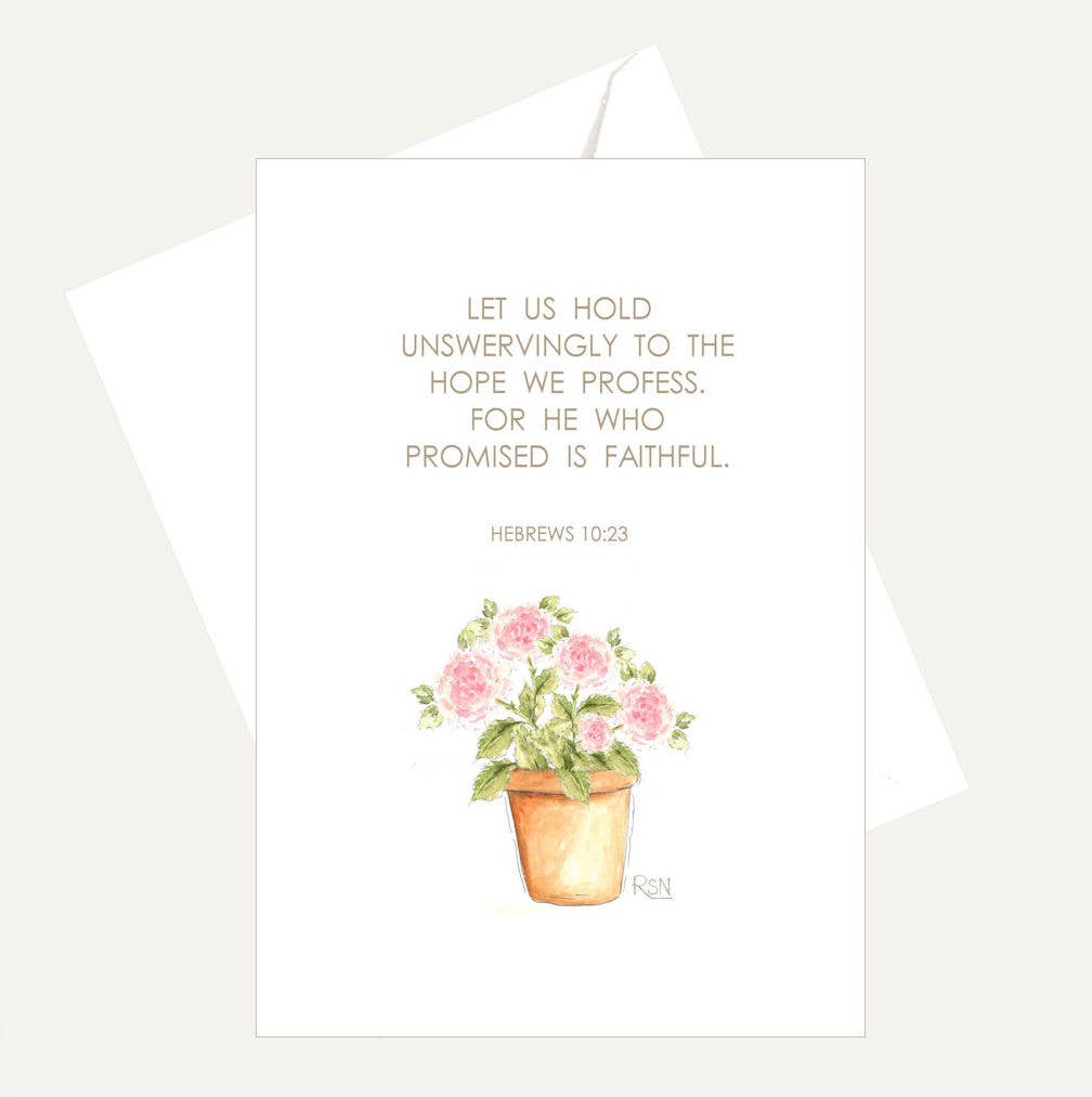 The calm of natural florals and the peace of the words of the Psalms...this card is a powerful note for all who are comforted by scripture. This card works well as a thinking of you card, a sympathy note, a bereavement card, or anyone in need of soul rest. Hand-lettered "He leads me to still waters; He restores my soul. Psalm 23" with hand-painted floral border. Blank inside. Digitally printed on #110 felted white stock. A2 card with final dimensions of 4.25" x 5.5" Packaged with a beige Kraft envelope in a clear cello sleeve. Blank on the inside.