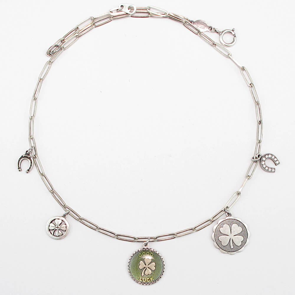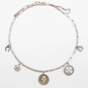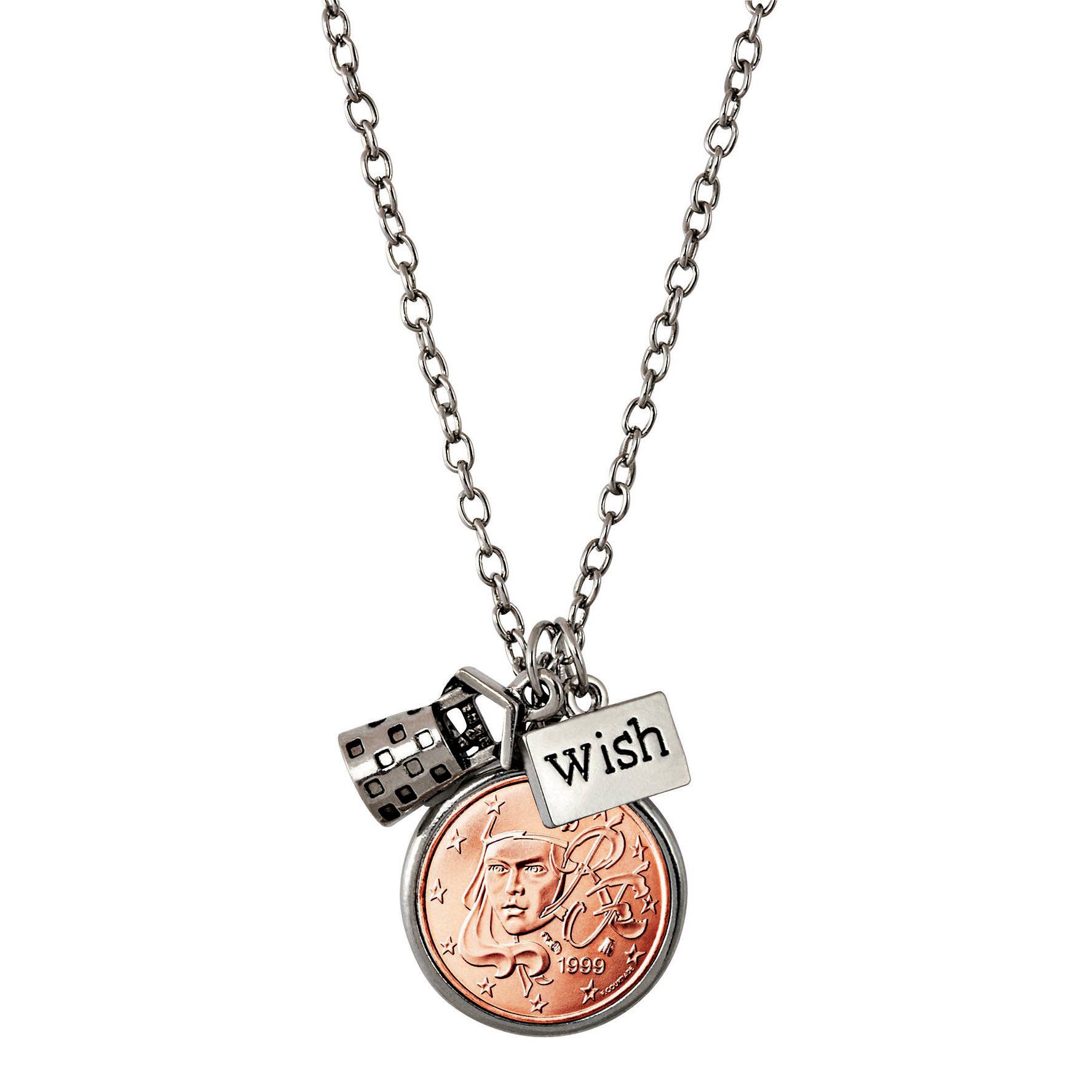 Lucky charms surround the Lucky Irish Penny. The bronze coin, minted at the Royal Mint in London from 1928-1998, features a decorative harp on the obverse, the symbol used on all Irish coins since the days of Henry VIII. Wish Bone Pendant chain is 24" long and silvertone. A certificate of authenticity is included.