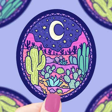 Pencils and Pines - Wholesale Sticker - Cactus Moon Waterproof Sticker