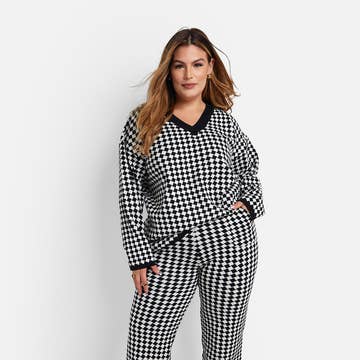 Octavia Checkered Knit Wide Leg Pants W. Pockets - Black & White