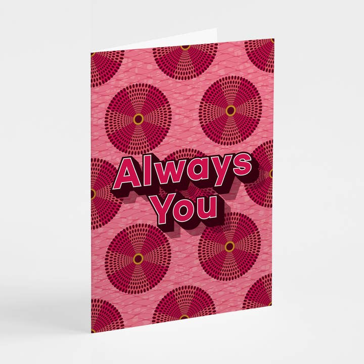 Shaven Raven Designs' Naija To Blighty concept is where bold Ankara-inspired pattern meets modern typography and everyday language. The collection reflects a third-culture perspective shaped between Nigeria and the UK, using colour and diaspora-informed visual language to explore connection, care, humour, and real life. This card is part of the Love & Friendship range - celebrating connection in all its forms. From romantic love to chosen family and long friendships, this range focuses on warmth, honesty, and everyday affection. *A6 size, portrait format (14.8cm long x 10.5cm wide) Printed in the UK on 300gsm TruCard stock *Recyclable and FSC Certified *Supplied with recycled or recyclable envelopes in a complementary shade *Blank inside for personal messages *Each card is packaged in a biodegradable sleeve, ready for sale