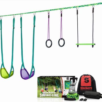 New Updated Version: With a great new look and the new two-part base with easy peel lid can be weighted with sand or water and comes with spillage free water plug. SWINGBALL SET: Get outside and play with the Swingball 5 in 1 Set! In an easy-to-carry case, you can play swingball, soccer, volleyball, tailball, and disc toss with family and friends. PLAY ANYWHERE: With the all surface base, these sports can be played anywhere, outside or in. All items store in the base which becomes a carry case with handle. For those ages 4 years old and up. FUN FOR ALL: It’s a whole lot of fun for the entire family! With a height adjustable pole, children, teens, and adults can play.