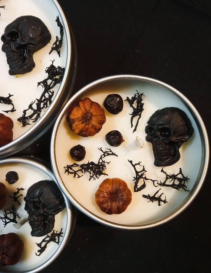 **NOTICE** We recently enhanced this offering by adding 2 extra ounces of wax, making the total burn time 38 hours, vs the prior 28 hours. The product is much more substantial in size, and perfectly compliments The Noir Collection Ritual or Apothecary Candles :: DESCRIPTION :: //Req•ui•em// Noun A mass for the repose of the souls of the dead. Night blooming Jasmine rises from a bed of deep Black Amber and Musk, while Sandalwood provides a peaceful, eternal resting place... Black tin with graphic detail. 3.125 (dia) x 2 (h). 38hr burn time.