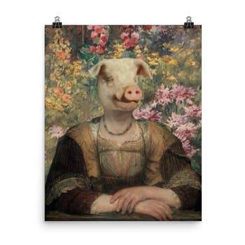 Unique art to please the unique characters in us all! These Matte prints are archival and superb in quality and acid free. Artwork has the same quality as a real photograph. Here are some great ideas to display/give your custom artwork: ** Hang it in your foyer as guests come into your home. ** Sneak it among your family portraits and watch your friends reaction. ** Give as a gift and watch the recipient giggle uncontrollably! I guarantee they will last over 200 years when taken care of. Prints come in a clear bag with board backing to ensure longevity. I combine real antique photographs with photographs of pets and wild animals to create cute and sometimes creepy artwork guaranteed to spark a conversation and reaction! I use Photoshop to digitally paint the images together and add textures that I have photographed for an extra vintage feel.
