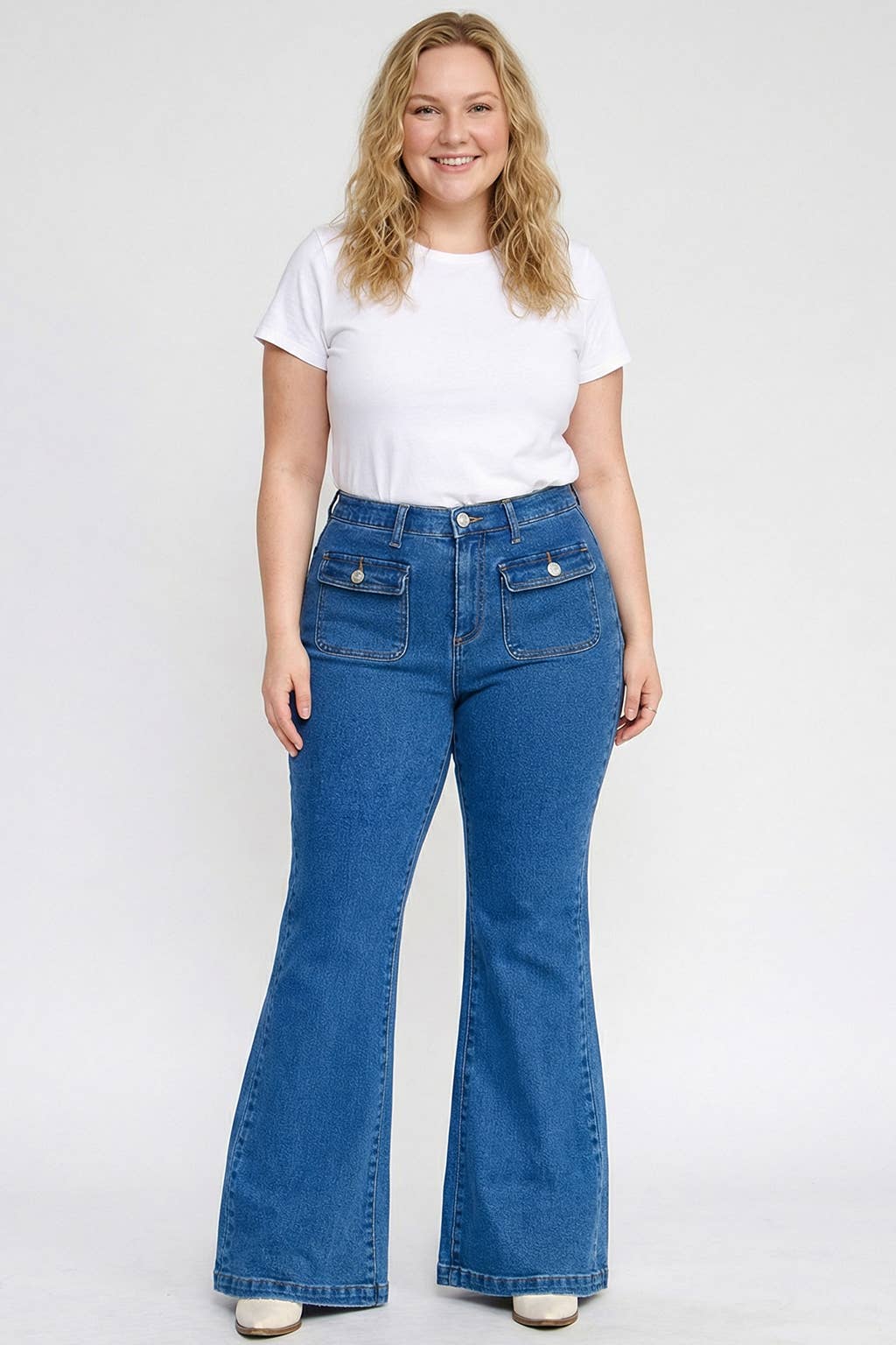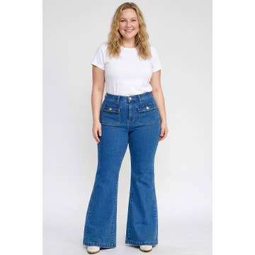 Judy Blue Mid Rise Tummy Control Vintage Wash Back Shield Pocket Flare, Inseam 33"