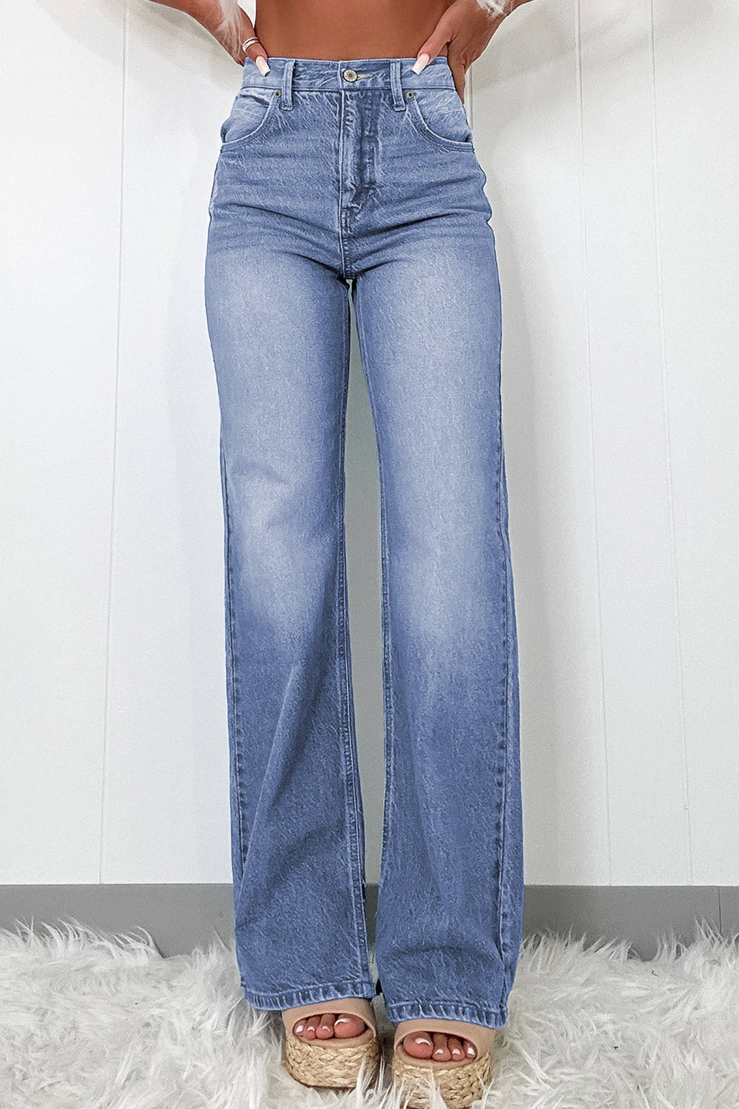 Elevate your everyday denim with the Judy Blue High Waist Double Button Fray Hem Bootcut Jeans. Designed with a flattering high-rise fit and supportive double button waistband, these jeans sculpt your waist while offering all-day comfort. The frayed hem adds a touch of modern edge to the classic bootcut silhouette. Finished with Judy Blue’s signature stretch denim and embroidered back pockets, this pair combines timeless style with a fresh, laid-back vibe. Regular Fit: Size down 1 from true to size. * Rise: 11.5" * Inseam: 32" * Fabric: 93% cotton, 6% polyester, 1% spandex * Made by Judy Blue Jeans