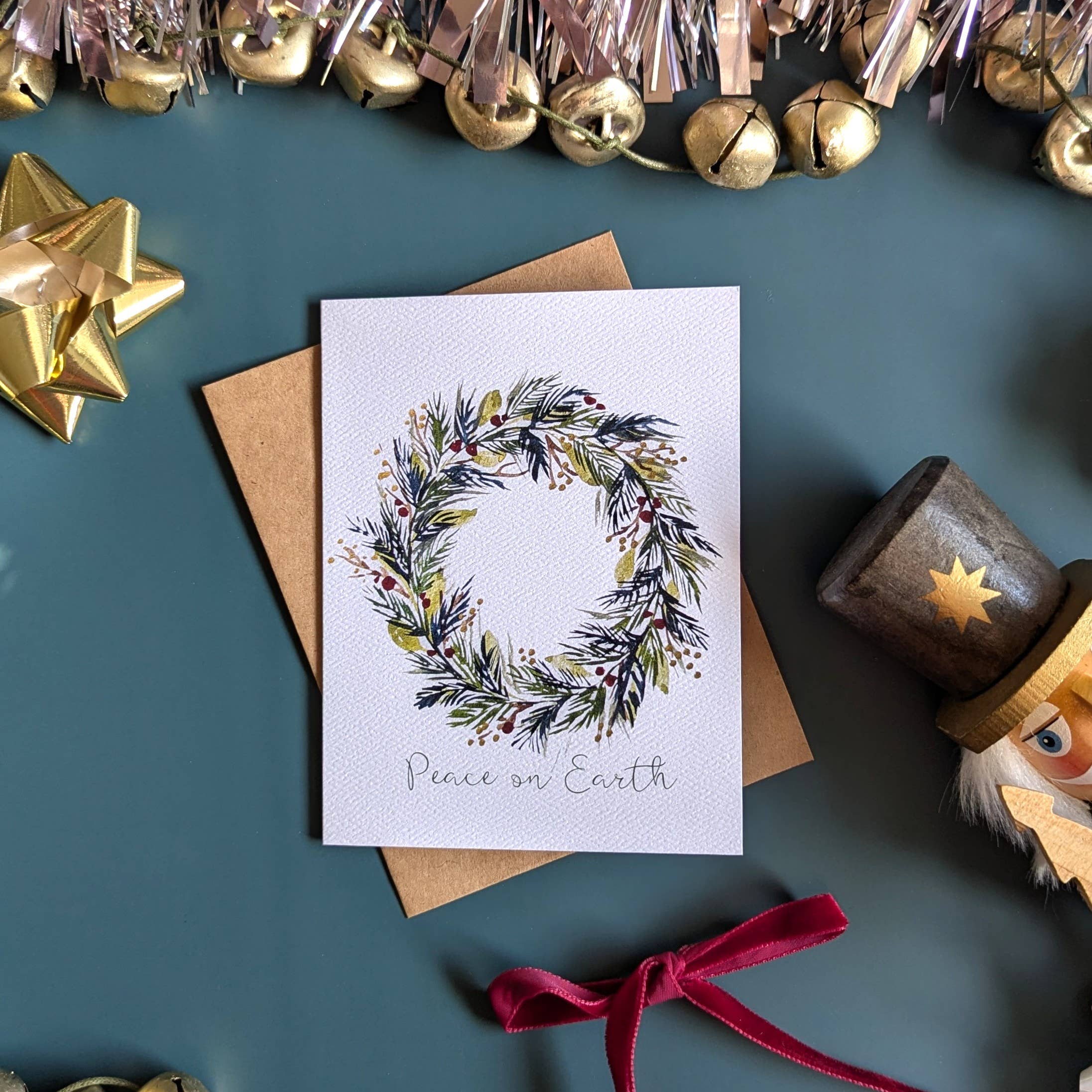 "And Heaven and Nature Sing." Letterpress printed in two colors; text from a beloved Christmas carol. • Card size is A6 (4 5/8" x 6 1/4") • 100% cotton • Blank inside • Boxed set of 6 • Letterpress printed in Chico, California