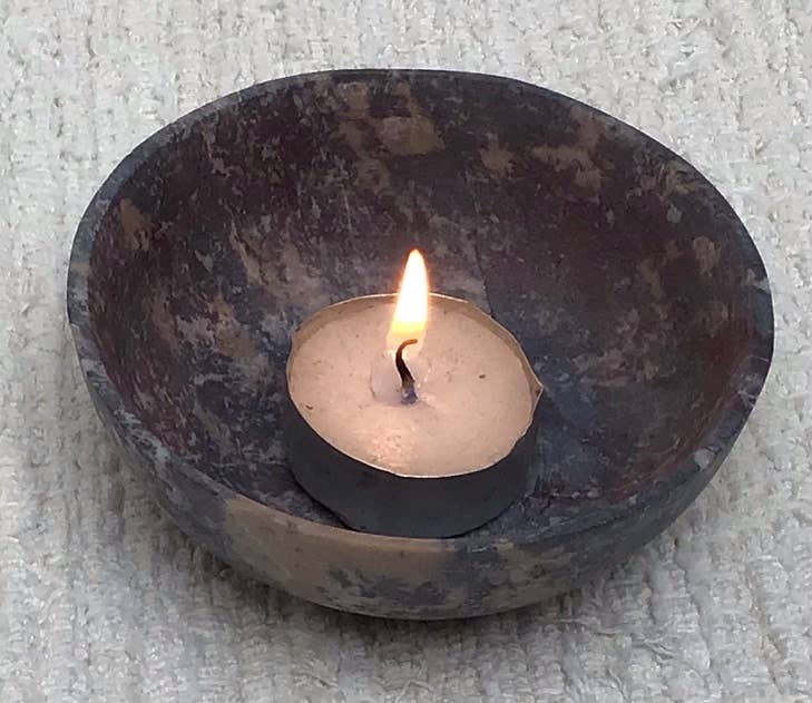 Our Ember Granite Tea Light Holders are handcrafted from reclaimed granite, adding a warm and inviting glow to your home. These unique and eco-friendly holders are perfect for creating a cozy atmosphere. Key Features: • Eco-friendly: Made from reclaimed granite. • Stylish design: The natural granite finish adds a touch of elegance. • Versatile: Can be used as a centerpiece, decorative accent, or mood lighting. • Durable: Made from durable granite. • Unique design: Each holder is one-of-a-kind. • Includes tea lights: Ready to use out of the box. • Handmade Excellence: One of a kind, carefully designed and artisan handcrafted in our New Hampshire studio. • Guarantee: Lifetime material and workmanship guarantee. Stone, granite, and hardwood colors and textures will vary naturally. Approximately 3" in diameter. Tea light candles included.