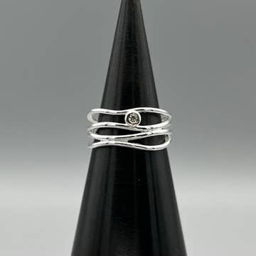 Etched Sterling Silver Crystal Spinner Ring