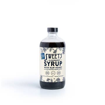 THIS IS A REFRIGERATED PRODUCT Sweet's Syrup with Raw Honey supports a healthy immune system with 1500 mg of antioxidant-rich, anti-inflammatory elderberry per serving. Raw honey helps calm coughs and seasonal allergies. Organic elderberries, filtered water, organic spices (cinnamon, clove, and ginger) blend with raw honey that's rotated seasonally, providing the specific pollen support you need, at just the right time. Delicious as a daily supplement or mixed into cocktails, mocktails, smoothies, and recipes both sweet and savory. This preservative-free product requires refrigeration and has a 6 month shelf life before opening. Opened syrup should be consumed within 3 months or frozen for longer storage. WINNER: 2023 Good Food Awards SUGGESTED USE: 1 Tbsp for adults/big kids, 1 tsp for children age 1+ for daily wellness. Take every 3-4 hours as needed for symptom care. Not for use in babies under 12 months. Organic Ingredients | Non-GMO | Colds | Flu | Allergies | Cough