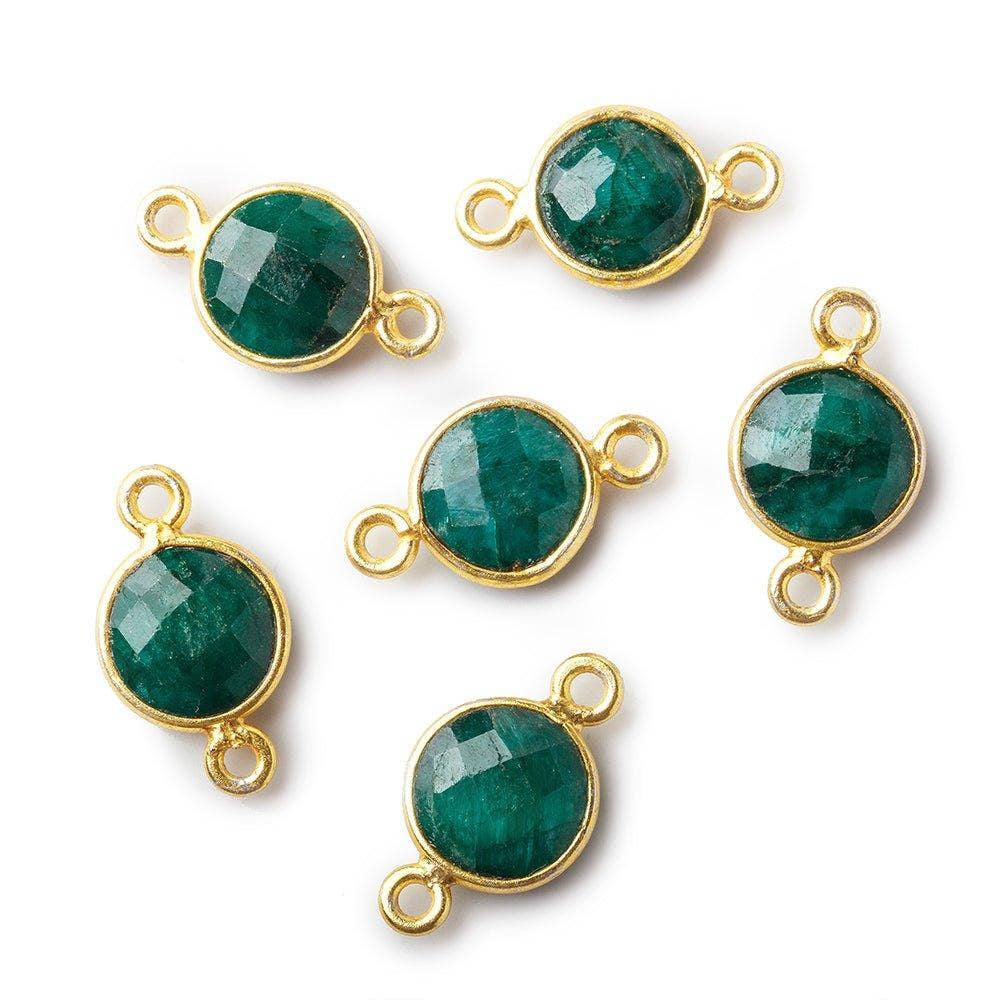 9mm Vermeil Bezel Emerald Coin Connector Focal Bead 1 piece. These stones have been color enhanced to give them a rich even emerald green tone.Â