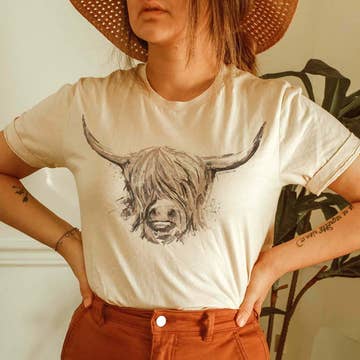 The Lattimore Claim brings you the Hand Drawn Highland Cow - CREAM t-shirt. Printed on super soft women's tees, this design becomes an extension of your personality, making it more than just apparel. Our screen printed t-shirts are not only a nod to fashion but also to the artistic spirit of Texas Hill Country. Enjoy a wearable piece of art that's as unique as you.