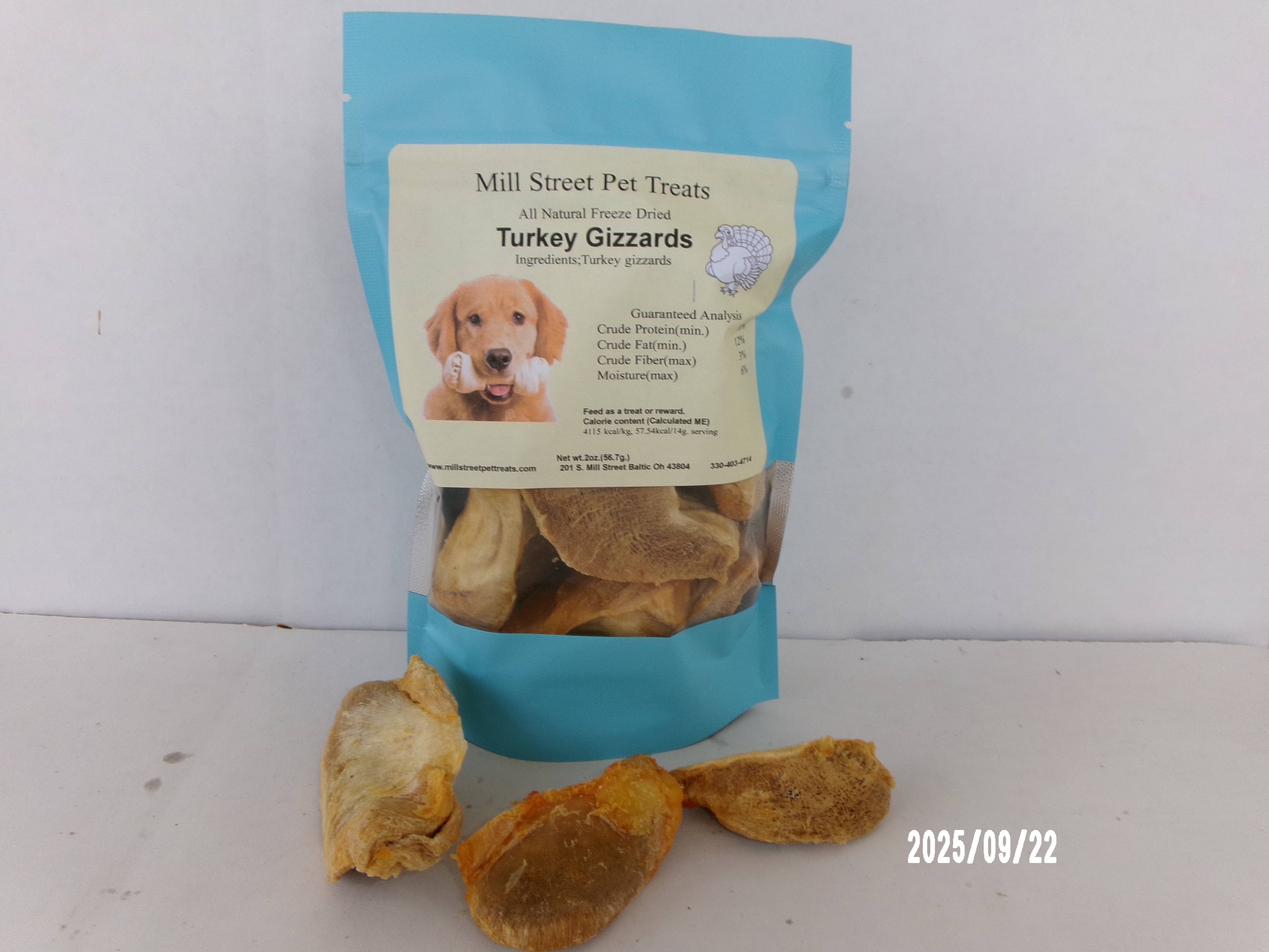 Turkey Chips are made of 100% freeze dried, human grade Turkey Hearts. This is a single ingredient dog/cat treat that has been USDA inspected and free of additives, grains, gluten and hormones. Perfect treat for the very finiky eater. Not intended to be used as a meal, but great as a healthy snack for your pet. Our treats have the nutrition and flavor of raw meat without the mess! All of our freeze dired products are raw and should be treated as such. Please wash hands after feeding them to your pet. Made in the USA.
