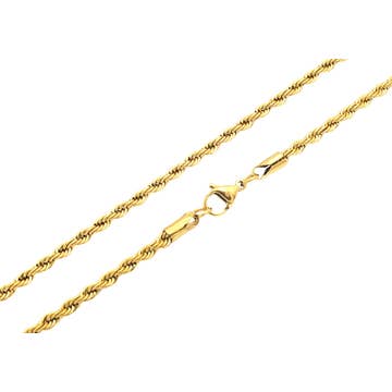 5mm Rope Chain Necklace 14k Yellow Gold Plated 24" Inch
