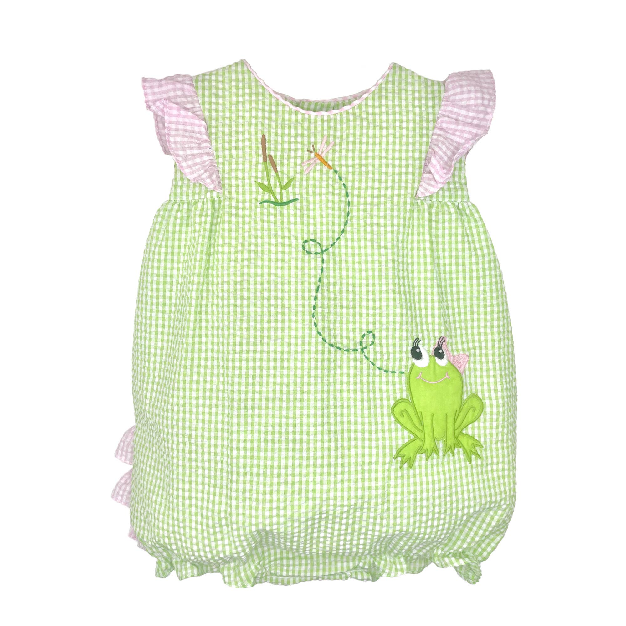 A classic patriotic dress that is perfect for celebrating the 4th July, whether its a backyard barbecue, a parade or watching fireworks this dress is the perfect outfit! This sleeveless dress comes in a blue and white gingham check fabric with a center insert with hand worked picture smocked American flags and a contrasting red gingham check ruffle at the neck for some added flair. The back of this dress has an overlapping button closure design. Made with a cotton-poly blend fabric that is light weight and easy to care for - just machine wash and tumble dry. Matching bloomers are included on sizes 3 Month through 24 Month only.