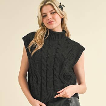 ​Turtleneck knit sweater vest. This versatile piece features a cozy turtleneck design and a sleeveless silhouette, making it perfect for layering. The soft knit fabric ensures warmth and comfort, while the classic cut adds a touch of sophistication to any outfit. Ideal for pairing with long-sleeve tops or wearing on its own for a stylish, contemporary look. -Model is 5'9" and wearing a S/M