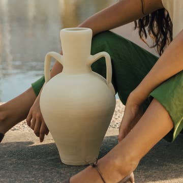 Ideal vase for decoration and designed for dry flowers. It has a white color with a rough texture. It is made with open pore, so we do not recommend using it with water, as it can ooze liquid over the hours. Each piece is handmade and unique, so you'll find imperfections and marks on them. The traces of craftsmanship are noticeable on each piece. The measurements and color reflected are indicative and may vary due to the manufacturing process.