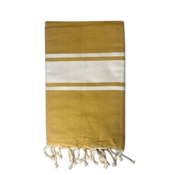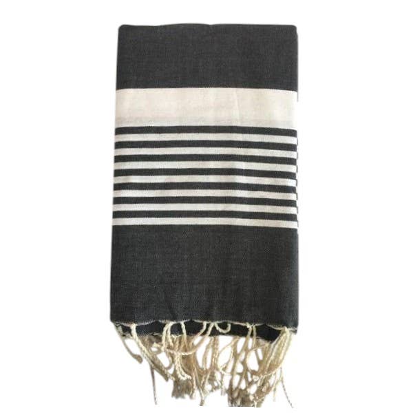 Fouta Paul 100% recycled cotton 190gr - alternating wide stripes and thin stripes - flat weave 200x100cm The fouta is a popular accessory for days at the beach or by the pool. It offers several advantages: Lightweight and compact: The cotton fouta, a lightweight material, makes it easy to carry. It takes up little space in a beach bag. Quick drying: Unlike traditional towels, the fouta dries much faster. This allows it to be reused several times throughout the day without remaining damp for long. Versatility: In addition to serving as a beach towel, the fouta can be used as a pareo, picnic tablecloth, blanket, or even as a yoga mat. Aesthetic and design: The beach fouta is often decorated with colorful and elegant patterns, making it a trendy accessory. It can be used to add a touch of style to your beach look.